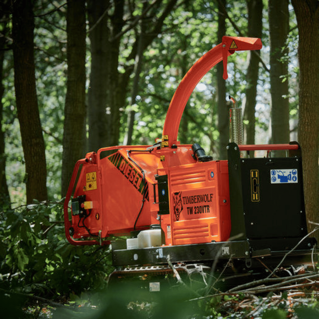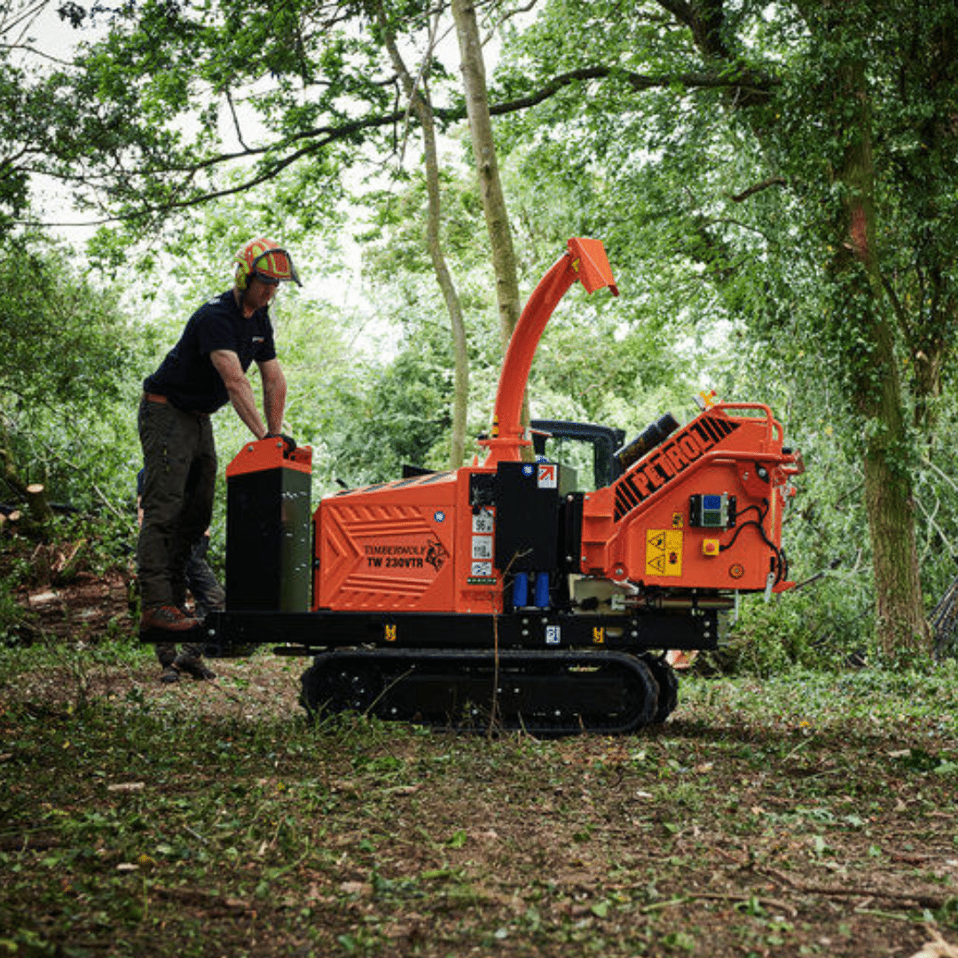The Timberwolf TW 230VTR Petrol Wood Chipper is a powerful, professional-grade tracked wood chipper built for demanding arboriculture and landscaping work. Powered by a 37 hp Briggs & Stratton Vanguard V-Twin petrol engine and featuring Timberwolf’s WolfTrack® variable-width, dual-speed tracking system, it’s designed to navigate rough terrain and tight access points with ease while delivering robust chipping performance.